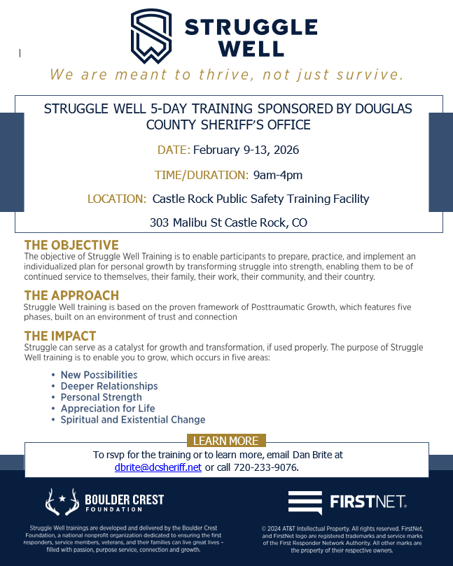 Struggle Well trains active serving military units and first responder agencies so participants are able to transform struggle into strength and growth, and be of better service to themselves, their family, community, and country.